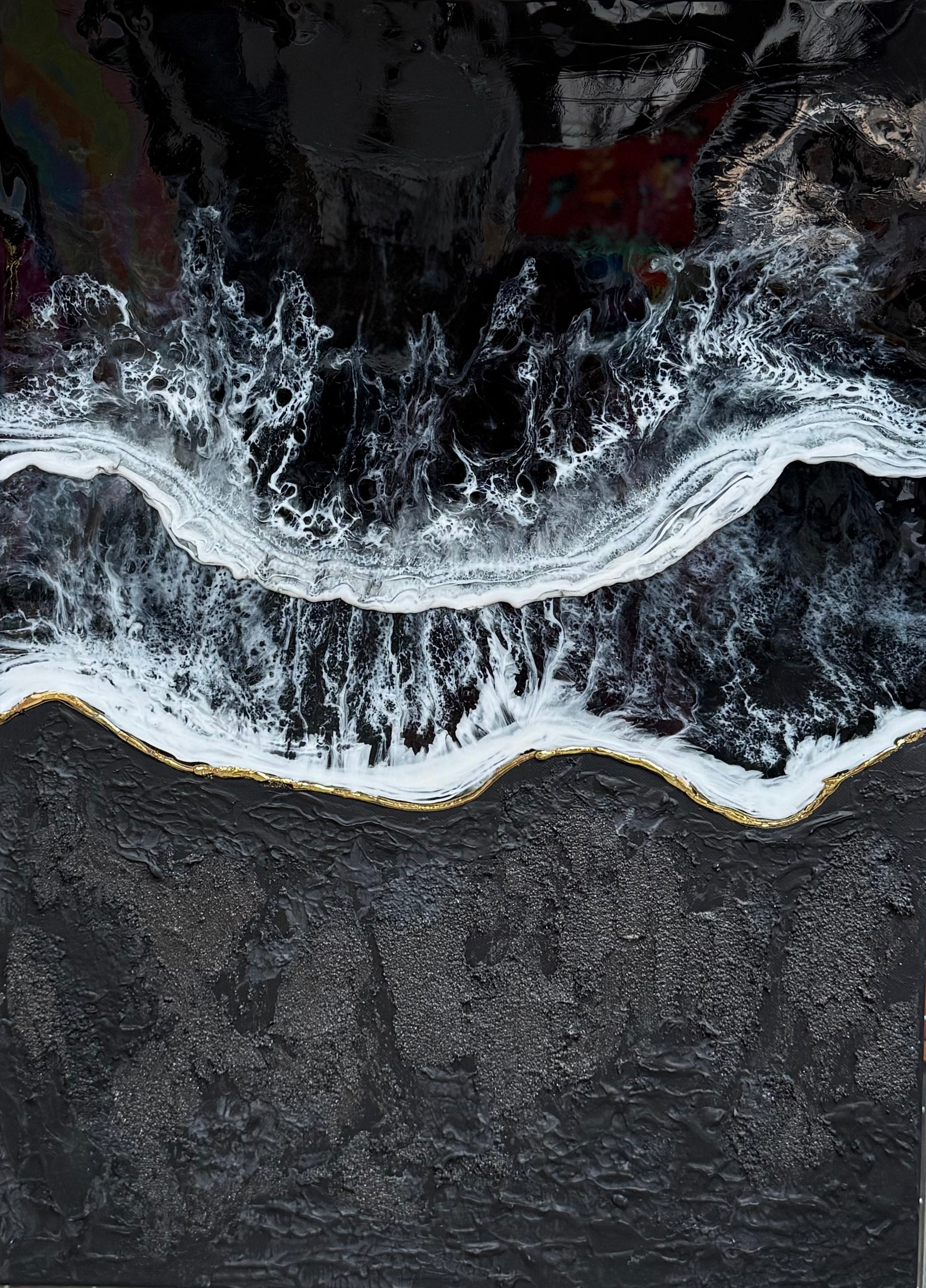 Tableau Acrylique, Résine & Feuille d’or sur toile 50x70 cm, oeuvre originale.